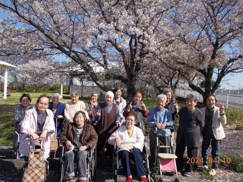 毎年のお楽しみ「桜のお花見♪」を実施致しました。幸手は権現堂がメジャーですが、それだけに激混み!施設から近いので権現堂は送迎の際の車窓からで、近くのお花見しやすい隠れたお花見処へGO♪ご参加の皆さんとパチリ🌸