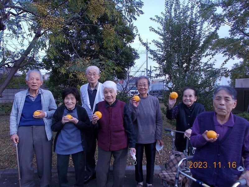 さっての里にはみかんの木が植えてあり、デイサービスではみかん狩りも大人気♪収穫したみかんはおやつでいただきまーす♪甘い?酸っぱい?
