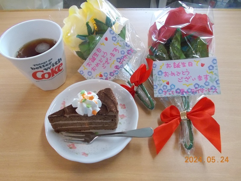 毎月、誕生月の方のお誕生会を実施いたします。これも皆さんのお楽しみのひとつ。いつもより豪華な行事メニューとケーキ、スタッフ手作りのプレゼントなど、毎回趣向を凝らした会を実施しています♪