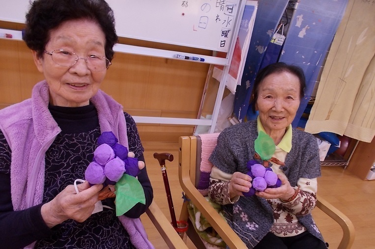職員が驚いてしまうほど皆さんが熱中するのが「創作活動」♪昔を思い出し?時間が経つのも忘れてしまいます(笑) 孫にあげるわー♪ 部屋に飾るのー♪ 皆さん思い思いの作品が盛り沢山です♪